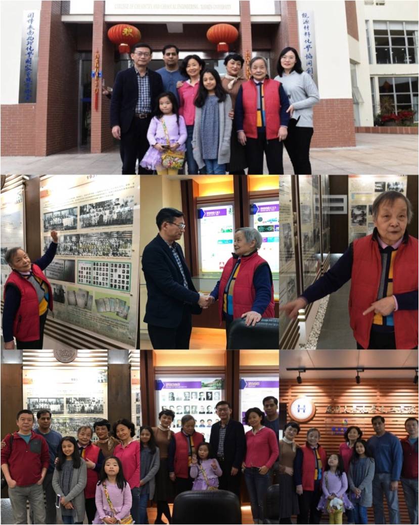 临近新春佳节,美丽的厦大校园里充满温馨的浓浓年味。2月14日,校园里迎来一行“特殊”而又熟悉的客人,他们是原厦门大学理学院院长、厦大内迁长汀时期的化学系系主任刘椽先生之女刘芳萘女士、外孙女孙少敏、孙雪芬女士等一家7人。已经快80岁高龄的刘芳萘女士在家人的陪同下重访厦大,缘起于孙少敏和孙雪芬女士为完成母亲重返儿时成长的“故里”,缅怀刘椽先生的心愿,同时应化学化工学院副院长吕鑫教授邀请,也为刘芳萘女士带来一份特别的80岁生日礼物。