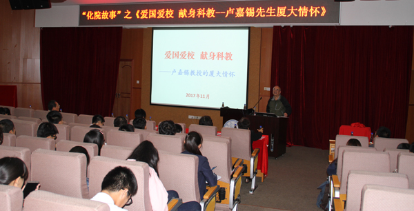 本次报告会是卢咸池教授到校参加卢嘉锡科学教育基金会2017年度颁奖大会之际,应学院“化院故事”讲坛邀请而作的一场报告。“化院故事”是我院开展新生入学教育的重要一课,学院新生了解学院传统,熟悉院情院史的一个重要平台。活动以讲述化院卢嘉锡、蔡启瑞、陈国珍等老一辈教师的先进事迹和百年化院精神传统为主题,缅怀和纪念先辈,让同学们更加深入了解学院老一辈科学家一生卓越的成就与贡献,学习老先生们爱校、爱国、爱科学、爱人才的大爱精神,以此激励同学们学习化学的兴趣,特别继承和弘扬学院的优秀文化传统,引导学生以老一辈科学家为榜样,继承发扬老一辈科学家的崇高精神和高贵品质,努力学习,刻苦研究,争取为我国的科技创新事业添砖加瓦。