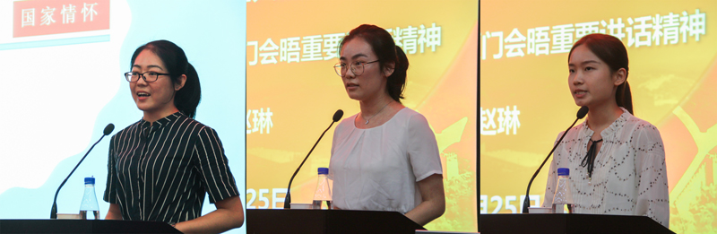 厦门会晤期间,学院师生积极响应号召,全院有近300名师生志愿者积极投身到会晤的各项工作中。在报告会交流环节,2015级硕士卢帆、2016级硕士马子天和2016级本科生陈晓菲等3名学生会晤志愿者代表分享了她们为厦门会晤作贡献的感悟和体会。她们朴实的语言和感人的事迹,展现出厦大学子的奉献精神、家国情怀与敬业责任感,让在场师生深受感动,深切地感受到厦门会晤的圆满成功举办的背后,有着许多像她们那样无私奉献、辛苦付出的志愿者们。