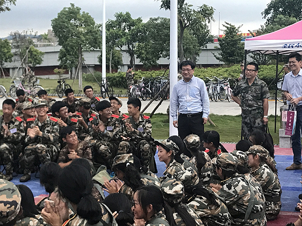 学院团委书记刘恩恩老师向同学们介绍,江院长一直很惦记同学们,坚持要到训练现场看望同学、教官和带队老师,前几次都因为军训团改变训练计划而不得不临时取消。这次江院长赶在军训结束前一天来到翔安校区慰问新生,体现了学院一贯重视人才培养特别是对本科新生入学教育的一贯重视。