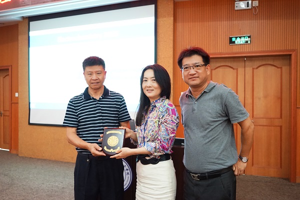 图为 孙世刚院士和江云宝教授为Shao-Horn教授颁发南强讲座纪念牌