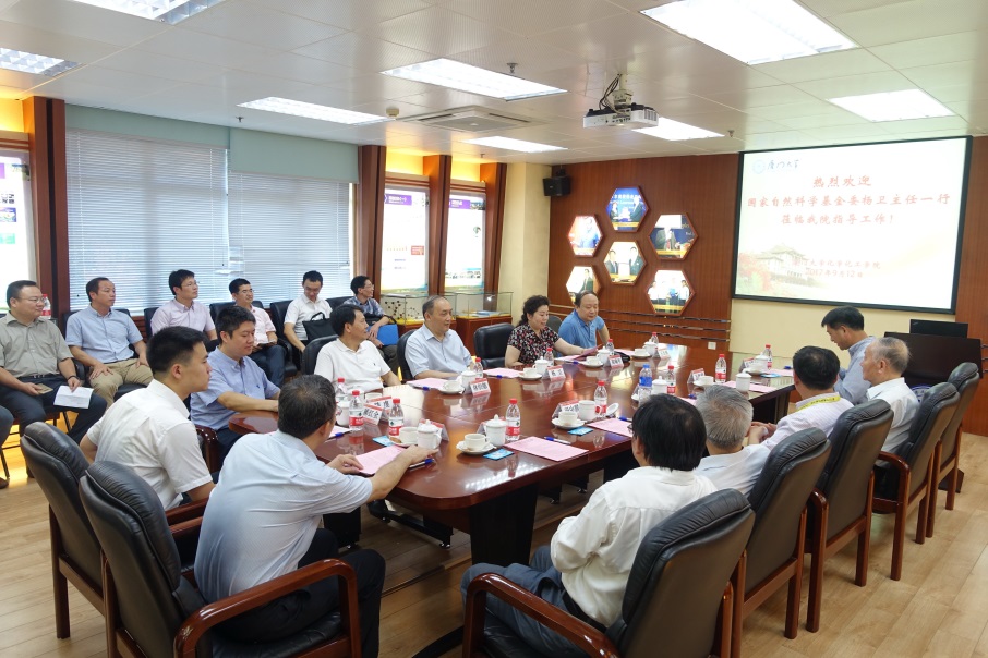 9月12日下午,国家自然科学基金委主任杨卫、副主任高瑞平、计划局局长王长锐以及福建省科技厅副厅长林伯德、科技厅基础研究处处长陈虔等深入我院调研。我校韩家淮副校长,科技处处长谭忠教授、副处长赖日泉、副处长陈能汪陪同来访。我院万惠霖院士、田中群院士、江云宝院长等学院领导、平台负责人以及学院共20余位参加调研座谈会。
