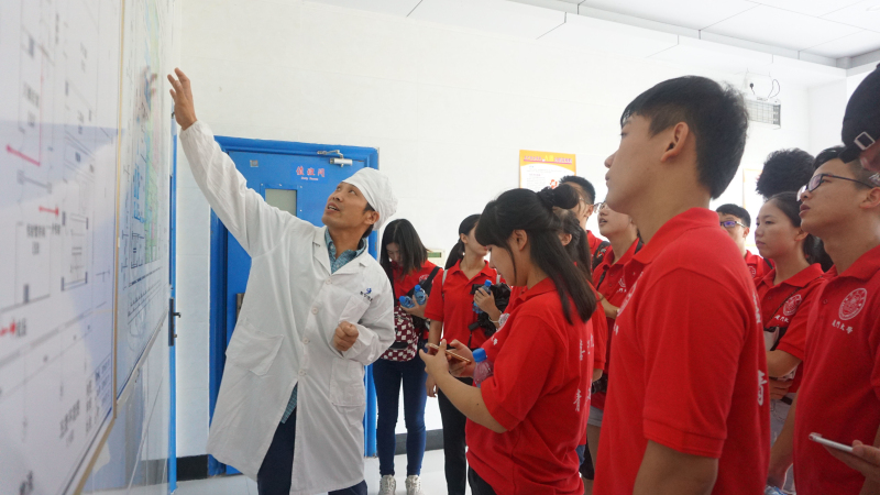 实践中,实践队先参观永宁药业各个车间和实验室,深入到企业生产车间一线,掌握技术和管理人员第一手资料和数据公司全自动化先进的生产线,井然有序的车间生产现场,分工合作的团队和温馨的公司文化给队员们留下了深刻的印象。随后,与公司管理人员和各研发部门技术人员进行座谈交流。公司副总叶凤高、常务副总李建文分别介绍了公司的成立背景、生产发展状况及市场前景和公司的人力配置、战略目标、企业文化以及销售模式。企业研发人员针对研发生产中所遇技术问题,特别是中药研究、化药研究及合成提纯分析等多个实际生产中的难点与实践队进行了深入探讨和热烈的讨论。通过座谈交流,同学们学习了新药研发、制药工艺和质量管控等复杂的生产应用实际,加深了他们对药企研发和生产情况的了解,也激发了学习专业知识的兴趣。