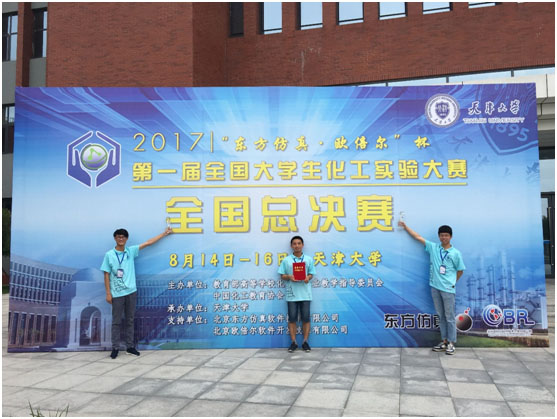 2017年8月14日-16日,"东方仿真·欧倍尔杯"首届全国大学生化工实验大赛全国总决赛在天津大学举行。我校由化学化工学院化学工程与生物工程系许振宁、周鑫和俞起程三位同学组成的"鼓浪听涛"队,在系指导团队多位老师的指导下,积极备赛,在总决赛中发挥个人能力和发扬团队协作精神,经过个人理论知识笔试和仿真操作机考以及团队实验操作三场比赛,以团队总成绩第三的优异成绩,获得该项赛事全国总决赛"特等奖"。
