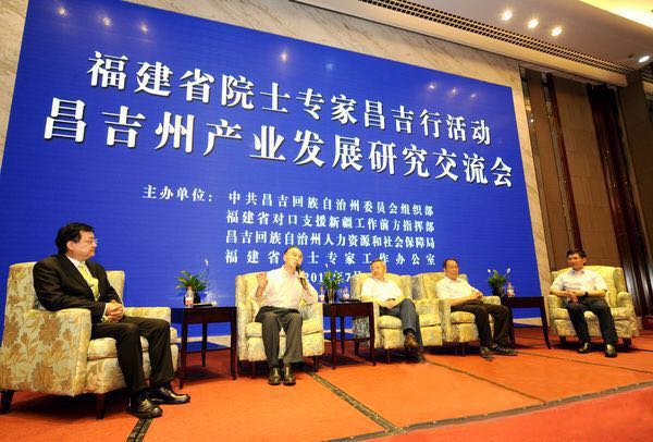 7月18日至20日,由昌吉州党委组织部、福省对口援疆工作前方指挥部、福建省院士专家工作办公室、昌吉州人社局联合主办的福建省院士专家昌吉行活动举行。中国科学院院士、我院田中群教授领衔的福建省11位院士专家莅临昌吉州,共同为昌吉自治州经济转型升级和企业科技创新出谋划策。固体表面物理化学国家重点实验室主任/“天山学者讲座教授”王野教授、醇醚酯化工清洁生产国家工程室主任袁友珠教授、学院化学工程与生物工程系主任/醇醚酯化工清洁生产国家工程室副主任/“天山学者特聘教授”陈秉辉教授等一同参加了这次活动。
