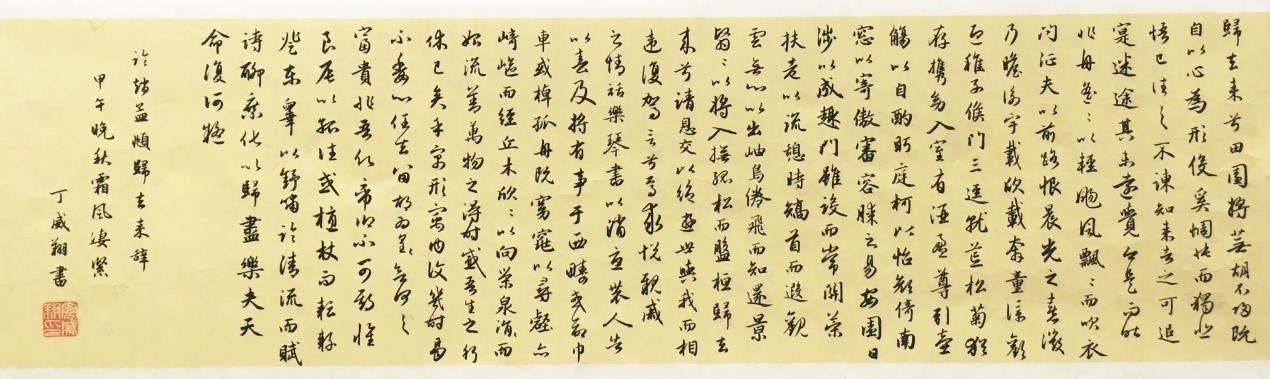 近日,教育部公布第五届全国高校廉政文化作品征集及廉洁教育系列活动获奖名单,我院2015级硕士研究生丁威翔同学的书法作品《归去来兮辞》从全国高校选送的众多作品中脱颖而出,喜获书画摄影类作品优秀作品奖。这是我校在本次活动中的唯一获奖作品。