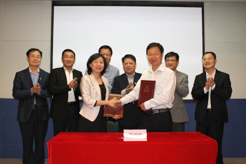 汕头市龙湖区副区长郑晓洁,化学化工学院副院长李军教授代表双方签约。