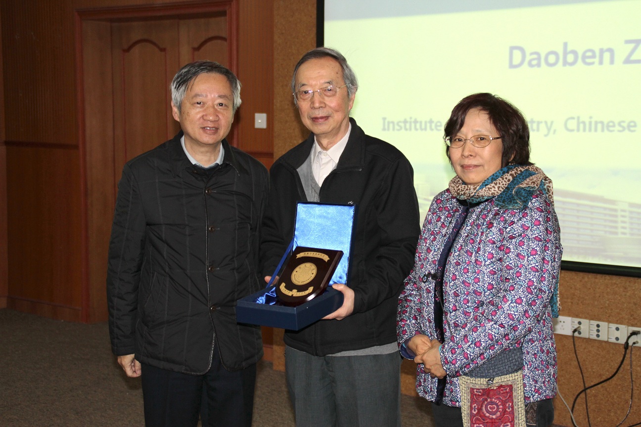 赵玉芬院士、田中群院士为朱道本先生授“南强学术讲座”纪念牌