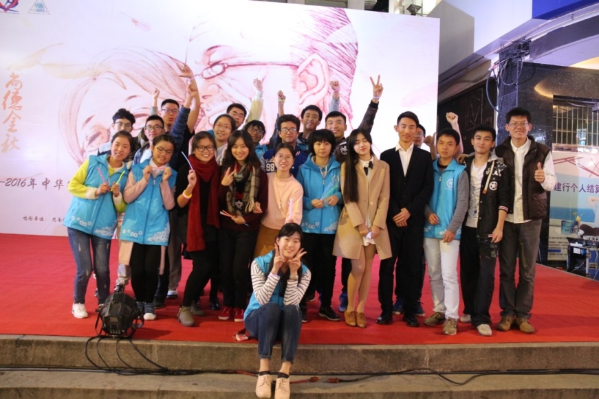 2016年12月18日,以“情满中华,尚德金秋”为主题的中华街道敬老月活动闭幕式在中山路举行。化学化工学院辅导员高世杰率领学院青协学生志愿者参加了活动。