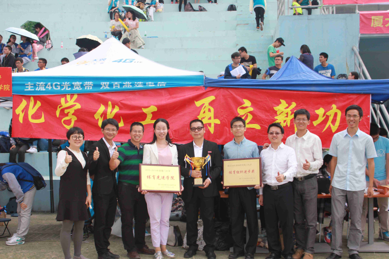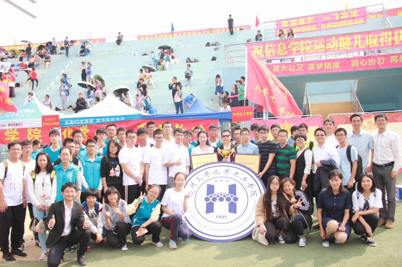 11月5日下午17时,为期两天的厦门大学第五十一届学生田径运动会圆满落幕。在本届运动会上,我院学子团结奋进,取得成绩均居于前列,研究生组成绩喜人,取得了总分第三位的优异成绩,本科生总分第十五名,最后以团体总分3538分位列全校第十名。院党委副书记李芬芬、刘俊杰,团委书记刘恩恩,团委副书记李竟菲、卢增夫、黄木河,辅导员高世杰、杨家麒、郭江淮,醇醚酯化工清洁生产国家工程实验室徐森艺等老师全程到场观看了比赛,与运动员并肩战斗,为他们鼓气加油。