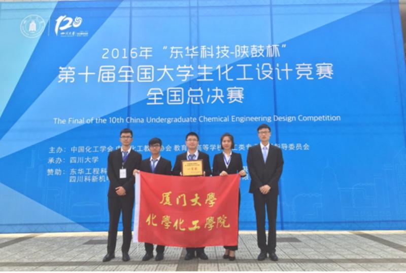 第十届“东华科技-陕鼓杯”全国大学生化工设计竞赛总决赛,于2016年8月19日-22日在四川大学举行。我校共有5支团队提交完整作品,经过激烈的竞争和层层的筛选后,我校化学化工学院化学工程与工艺专业2013级本科生兰洲、傅俊超、扶雅文、蔡吟天、陈琼同学组成的Re.action团队,进入了全国总决赛,经过现场展示和答辩荣获全国总决赛一等奖。其余的四支队伍分别获得全国二等奖、成功参赛奖的优异成绩。