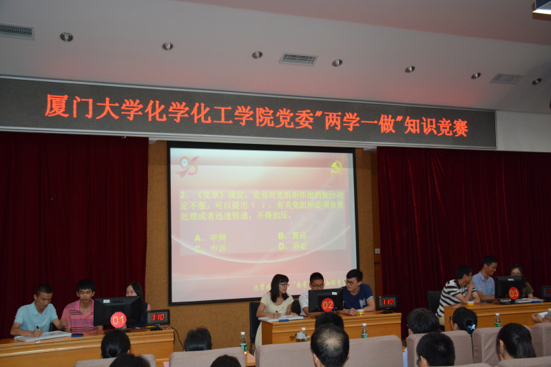 本次党章党史知识竞赛内容非常丰富,既有考察党章、党规、党史、党情以及习近平总书记系列重要讲话精神,同时融入厦大元素,着重考察师生对厦门大学党史、党情,校史院史的认识,使师生在学习和比赛过程中巩固有关学校党史、党情的知识。在参赛形式上,学院党委努力创新,采取教工党支部和学生党支部联合组队的方式。每支队伍选派3名代表参加答题环节,另外还要组织一个不少于15人的亲友团参加比赛中的互动环节,成员中至少有5人是教师党员。