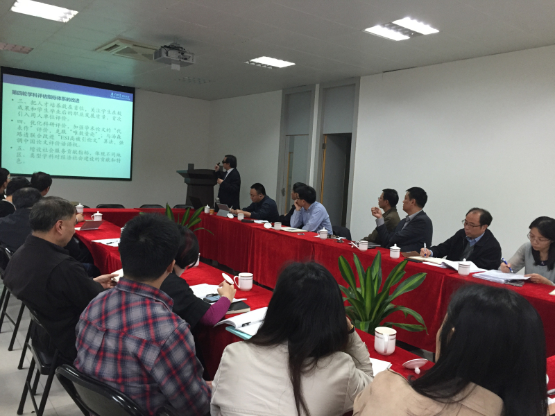袁友珠副院长首先代表学院欢迎并感谢研究生院对我院研究生各项工作给予的关心和支持。谭院长就2016年启动的学位授权点合格评估、学位授权点动态调整及第四轮学科水平评估进行介绍,并重点介绍第四轮学科水平评估的相关指标体系框架及改进方法等。随后大家就学科评估工作中的疑惑和问题进行热烈的讨论,谭院长做具体的解答和指导。最后江云宝院长做总结发言。他欢迎研究生院及其他兄弟学院与会参加讨论。他表示化院的发展得到学校、研究生院等职能部门、兄弟学院的大力支持和帮助;目前学院面临着良好的机遇与挑战,学院将在继续发扬传统办学优势的基础上抓准问题,找准方向,形成合力,再创新高。