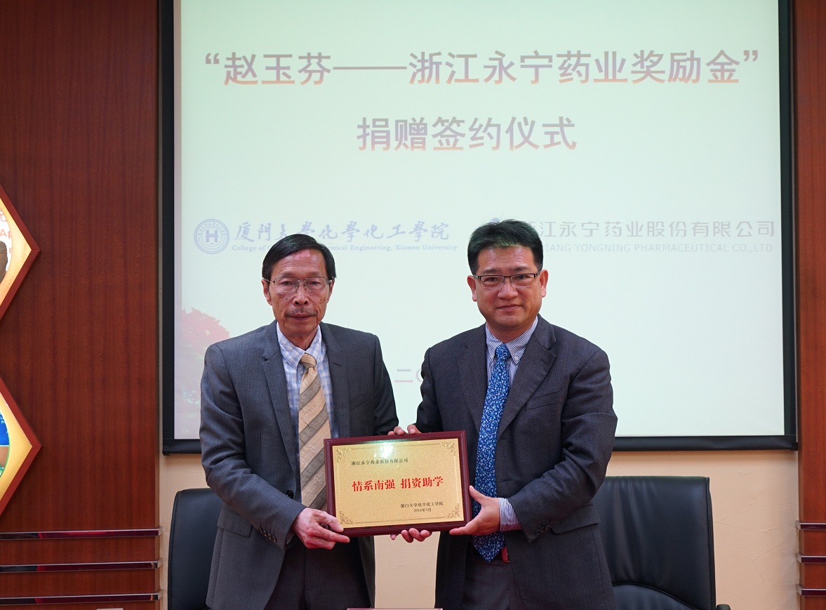 签约仪式上,张建霖校长助理代表厦门大学向捐赠企业表示感谢与敬意,浙江永宁药业作为一家成功的医药高科技企业,情系教育、捐资助学,企业与高校的主动对接,能够推动更多优秀科研成果转化,实现校企共赢。江云宝院长表示,捐资兴学是中华民族的优良传统,学生受到这些善举影响下,将不忘报效社会,回报母校,感恩母院。叶凤起董事长在随后的致辞中表示,人才是企业的保持生命力的良药,他希望通过设立奖学金,鼓励大学生刻苦学习,努力成长,弘扬传统美德。