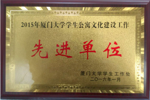 近期,我院获评“2015年厦门大学学生公寓文化建设工作先进单位”,由学生工作处评选并颁发奖牌。
