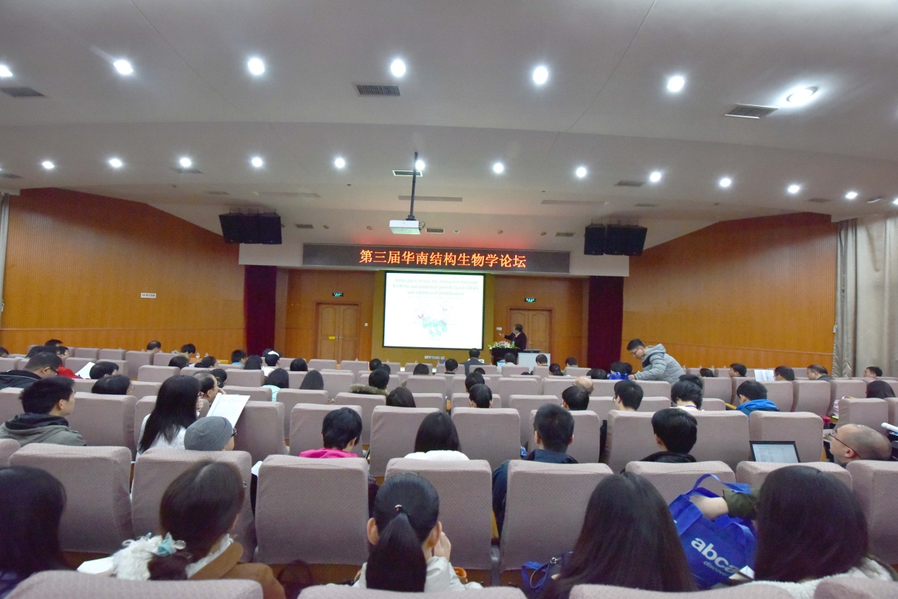 12月18-20日, 由我校化学化工学院、高场核磁共振中心(林东海课题组)、生科院(林天伟课题组,李勇课题组,韩爱东课题组)、公共卫生学院(国家传染病诊断试剂与疫苗工程技术研究中心)联合承办的第三届华南结构生物学论坛,于化学化工学院化学报告厅举行。230位来自华南地区(福建、广东、香港、江西、湖南等地)的结构生物学领域的老师和研究生参加了本次大会。组委会还邀请了来自美国、香港、台湾、北京、上海、天津、合肥的多位著名的结构生物学专家做大会报告,包括:国内的雷鸣教授(国家杰出青年科学基金获得者,国家蛋白质科学中心(上海)主任),张宏光教授(国家蛋白质科学中心(上海)副主任),董宇辉教授(北京高能物理研究所),滕脉坤教授(中科大生科院副院长),刘新奇教授(南开大学生科院,教育部新世纪优秀人才),海外的Holland Cheng 教授(美国University of California(Davis)),余靖教授(台湾清华大学讲座教授)、孟子青教授(台湾中研院生物化学研究所)以及香港大学的郝权等教授,香港中文大学的邵鹏柱和黄锦波等教授,香港科技大学的郭志红等教授。