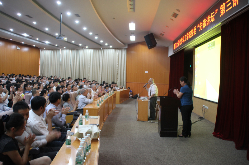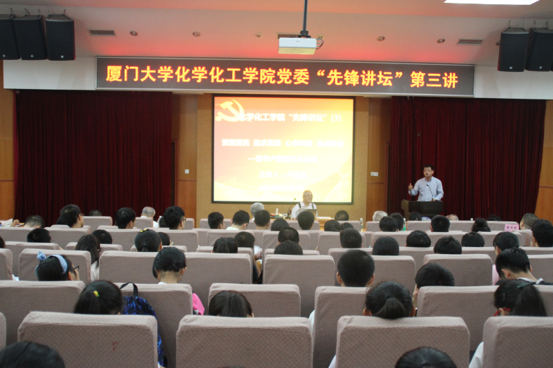 学院邀请卢嘉锡先生次子、北京大学卢咸池教授作客“先锋讲坛”,为我院广大师生作了题为《爱国爱民追求真理心系科技真诚奉献——追寻卢嘉锡先生的足迹》的主题讲座。卢教授向师生娓娓道起卢嘉锡先生生前的故事,进一步弘扬了卢嘉锡先生“爱国、爱校、爱科学、爱学生”的大爱精神。讲座由党委副书记李芬芬老师主持,院长江云宝教授致辞,在致辞中传达了各级领导专家在纪念卢嘉锡先生诞辰100周年座谈会上对卢先生一生贡献的高度评价,表达了对卢嘉锡先生的崇敬之情,指出了其精神是学院的传家宝,并对卢咸池教授的精彩讲座表示衷心的感谢。讲座吸引了我院许多师生,现场座无虚席。
