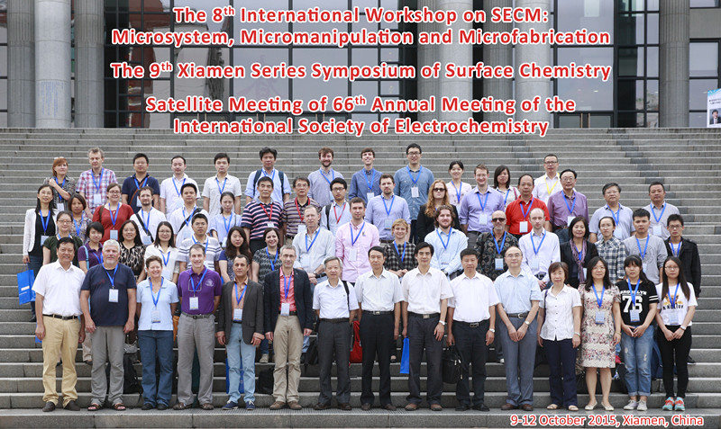 由固体表面物理化学国家重点实验室(厦门大学)主办的“第9届厦门表面化学系列会议-第8届国际扫描电化学显微镜研讨会暨第66届国际电化学年会卫星会”(“The 9th XiamenWorkshopon Surface Science -The 8th International Workshop on Scanning Electrochemical Microscopy: Microsystem, Micromanipulation and Microfabrication; The Satellite Meeting of The 66th Annual Meeting of The International Society of Electrochemistry And”)于2015年10月9-13日在厦门大学举行。来自海内外的有机化学和无机化学专家、学者和研究生200余人参加本次会议(正式注册代表160余人,两主办单位研究生约40人)。国家自然科学基金委化学部常务副主任梁文平研究员,国际电化学学会主席、法国巴黎高等师范学院ChristianAmatore教授,中国科学院院士、厦门大学田中群教授分别在开幕式上致辞。中国科学院院士田昭武教授、国家自然科学基金委化学部副主任庄乾坤教授、中国电化学学会主席孙世刚教授、固体表面物理化学国家重点实验室主任王野教授、化学化工学院党委林辉书记、化学化工学院副院长袁友珠教授等出席了会议开幕式。