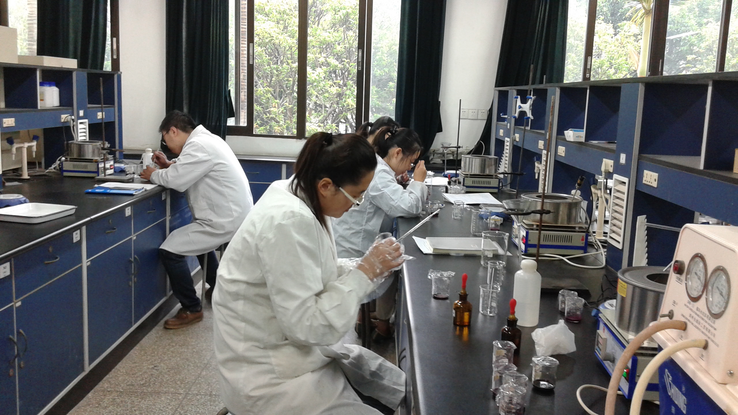 研究生同学正在全神贯注地做实验