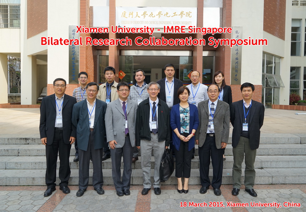 “厦门大学-新加坡材料研究与工程研究院 (IMRE) 双边研讨会”(Xiamen University - IMRE Singapore Bilateral Research Collaboration Symposium)于2015年3月17-18日在学院卢嘉锡楼202报告厅召开。会议由新加坡IMRE和学院共同举办,来自IMRE的5位专家和学院的5名教授作邀请报告。