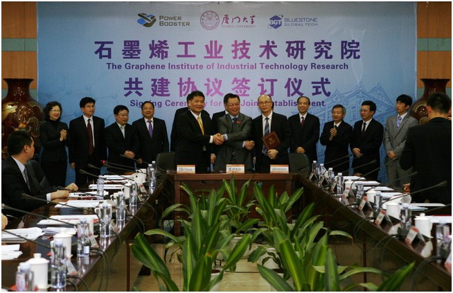 朱崇实表示,由于石墨烯的卓越特性,其应用和产业化得到世界各国的高度重视,在前期充分沟通协调基础上,厦门大学与英国BGT材料公司、福建辉锐材料公司签署了合作框架协议。目前,合作伙伴已顺利入驻厦大,并为启动第一期项目做好准备。签约仪式标志着研究院的建设将步入正轨,相信研究院一定会在石墨烯应用技术研发上取得丰硕成果,提升厦门大学的整体实力和国际影响力,推动厦门、福建乃至中国成为全球石墨烯产业技术的制高点。