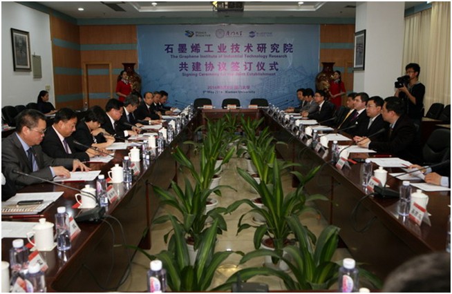 据悉,研究院将采用校企联合共建模式。除了我校外,另外两个共建方均为开展石墨烯技术研究的知名企业:英国BGT材料公司和福建辉锐材料科技有限公司。前者是全球最早一批专业开展石墨烯技术基础和应用研究的知名企业。后者则是目前世界上唯一掌握平方米级单原子层石墨烯制备和转移技术等石墨烯产业化中关键高难核心技术的企业。