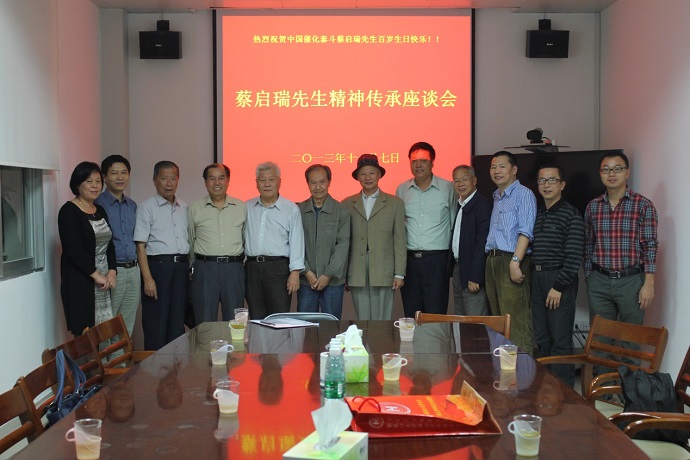 为了祝贺中国催化泰斗蔡启瑞先生百岁生日,使蔡启瑞先生精神能够得到更好的传承,11月7日晚七点半,我院在同安二201会议室召开了蔡启瑞先生精神传承座谈会。出席座谈会的有学院老师林国栋、张鸿斌、廖代伟、赖伍江、吴辉煌、蔡俊修、潘宝柱、周朝晖、袁友珠、夏文生以及学院党委书记林辉、团委副书记郑辉,座谈会由学院党委副书记李芬芬主持。