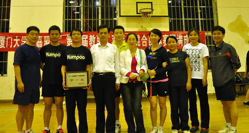 至此,化院已经连续获得了五届的冠军,尽显王者风范!同时,在新队员比赛经验较少,技术火候还不够纯熟的状况下,仍然能凭借他们撑起半边天,今年的比赛赢得更有意义!希望通过我们羽毛球队伍新老传承的成功,可以吸引更多的老师参加到羽毛球这项运动中来,在保证科研教学工作顺利进行的同时,也能够多运动健身,放松精神,更健康的工作!