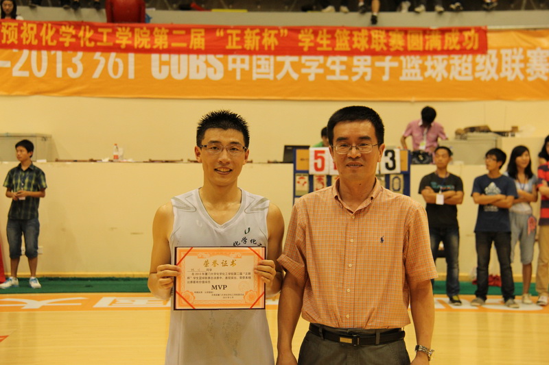 5月25日晚7点半,厦门大学化学化工学院“我的中国梦”系列活动之2013年第二届“正新杯”学生篮球联赛总决赛在明培体育馆隆重举行,由本科冠军09化工联队对阵研究生冠军博士联队。厦门大学副校长金能明、学生工作处处长夏侯建兵、团委书记陈怀锋、体育教学部党总支书记郭琼珠、化学化工学院党委书记林辉、院党委副书记周朝晖、院党委副书记宋友良、院办公室主任王沈扬及厦门正新橡胶工业有限公司协理陈莹光、经理曹和胜到场观看比赛,学院全体辅导员老师一并出席。