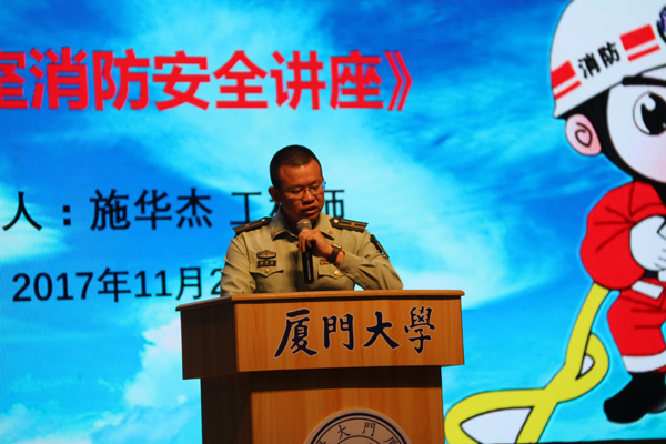 11月2日下午,学院在建南大会堂举办实验室消防安全讲座。学院党政领导负责人、实验室安全员、辅导员、物业管理人员、学院实验安全课程教师代表以及全院全体研究生、高年级本科生等1500多人参加了培训。本次讲座由厦门市公安消防支队翔安大队工程师施华杰参谋主讲。