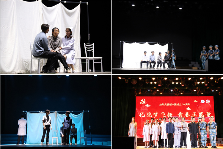 本次汇演四个剧组的剧目,均由学院学生自导、自演,其中3个来自本科生,1个来自研究生。整场演出高潮迭起,舞台剧与歌舞诗朗诵相互穿插,充满青春正能量,同学们以精湛的演技塑造了饱满的人物形象,赢得了在场观众的阵阵掌声。“化院红剧,十周年经典传承!”。校党建办主任廖志丹在点评中说道“化院有深厚的学科底蕴和历史文化,红剧十年是一种传承,更是一种坚持。红剧大赛是一堂思政课,一种实践课,参演同学,观众同学在这过程中都得提升,有思考,有感悟。这呈现不只是演绎本事,这是培养人才的舞台。”校关工委常务副主任黄如彬老师也用“笑声、掌声和鸦雀无声,台上台下融为一体”高度评价了活动的效果。