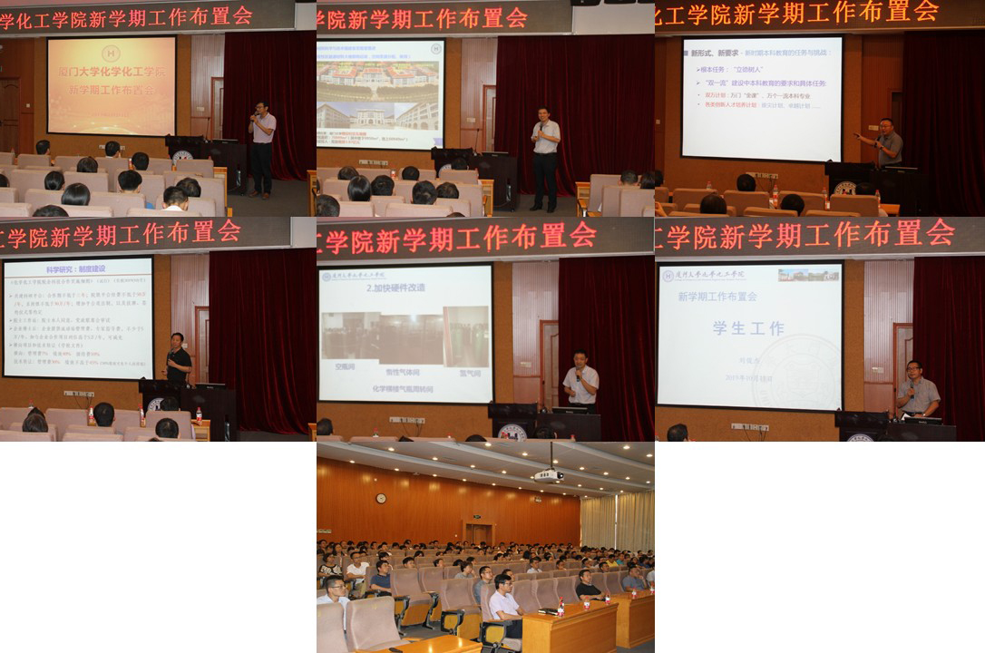 2019年10月11日,学院新学期工作布置会在化学报告厅顺利召开。会上,学院党政领导根据学校新学期工作布置会精神,部署学院新学期重点工作。学院党政领导及全院教职工出席了本次会议。会议由学院党委书记宋毅主持。