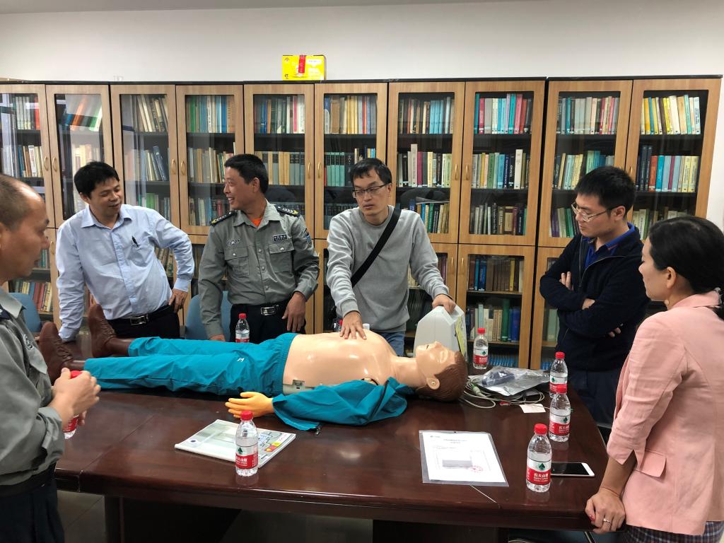 11月14日下午,席勒除颤仪培训师林工为学院安全管理人员及物业人员进行了AED的急救培训,学院张昌胜副院长参加了培训。