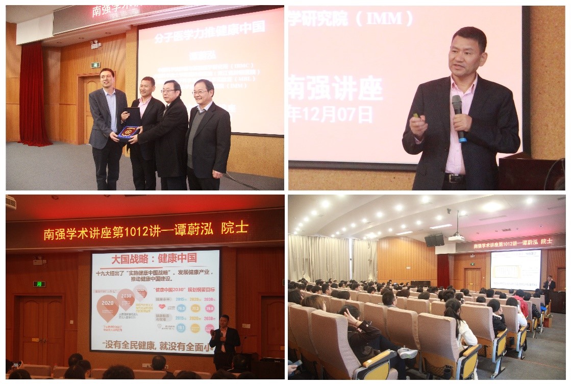 2019年12月7日,中国科学院肿瘤与基础医学研究所所长、中国科学院大学附属肿瘤医院教授、上海交通大学分子医学研究院院长、湖南大学化学化工学院及生物学院教授谭蔚泓院士应邀做客厦门大学最高级别的“南强学术讲座”,为我校师生带来题为《分子医学助力健康中国》的学术报告。讲座由黄培强教授主持,科技处处长谭忠、我院院长谢兆雄为谭蔚泓院士颁发“南强学术讲座”荣誉铭牌并合影留念。