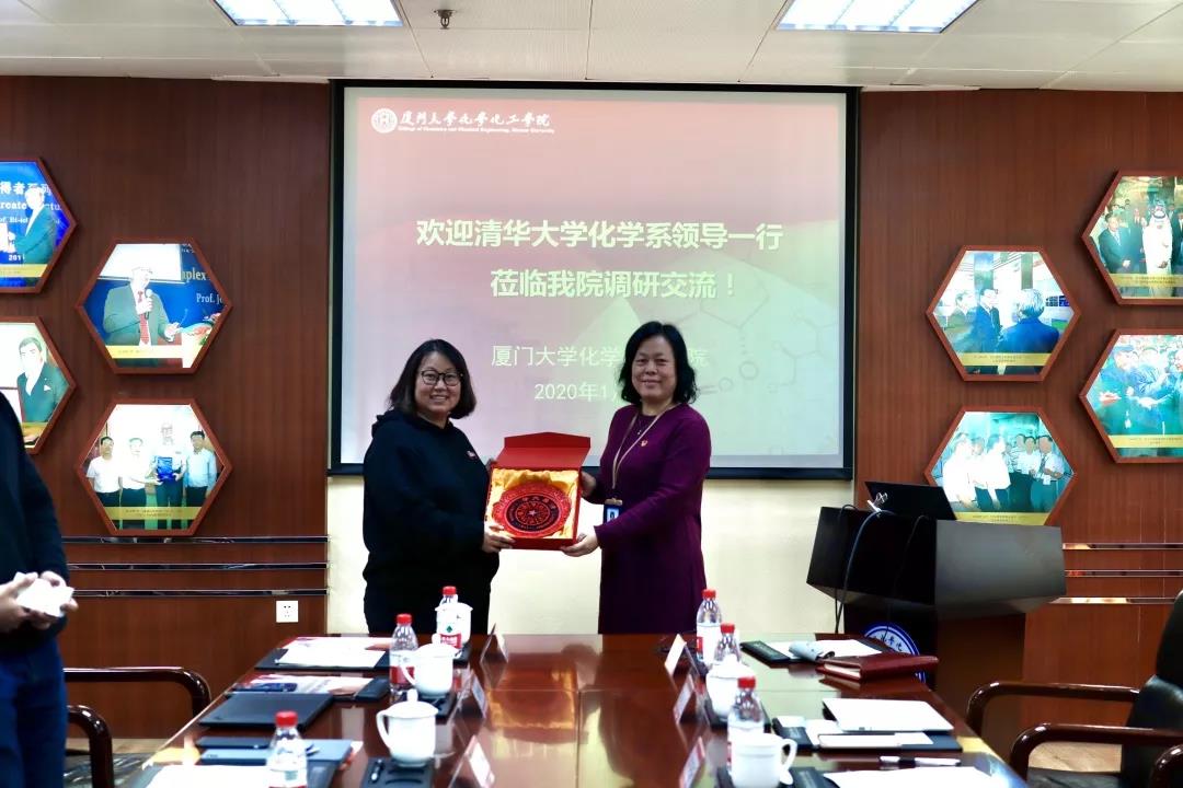 工作汇报后,双方就院系党建工作开展和学生思想政治工作开展的经验和做法,如院系党委履行党委主体责任、发挥政治核心作用、学生思政工作的思考和实践,宣传思想工作架构、新媒体运用,因材施教和拔尖创新人才培养工作等方面进行了广泛深入的交流。座谈会在轻松愉快的氛围中圆满结束,冯琳副书记代表清华大学化学系向我院赠送了清华大学纪念牌匾,并和与会的院学工组成员进行合影留念。