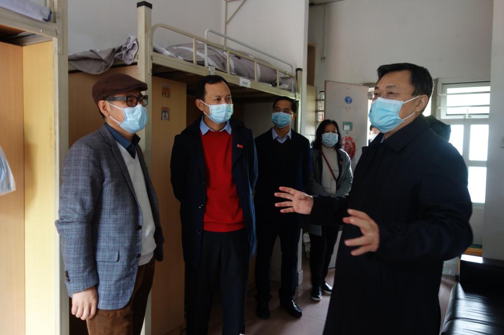 2月3日(农历初十),校长张荣、副校长邱伟杰率领学生工作处等相关部门领导来到芙蓉一学生宿舍,看望学院春节期间留校学生及值班教工,带去新春的问候。