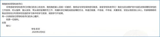 在这个特殊时期,组织的关怀,就是巨大的向心力,而辅导员平时与学生积累的感情和信任,更是起到了稳定军心的关键作用。正如学生所说,面对疫情,看到老师们、党员们有时候凌晨还在群里发消息、收信息,他们很感动。