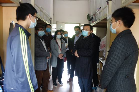 (图:化学化工学院党委书记宋毅在学生宿舍检查指导防控工作)