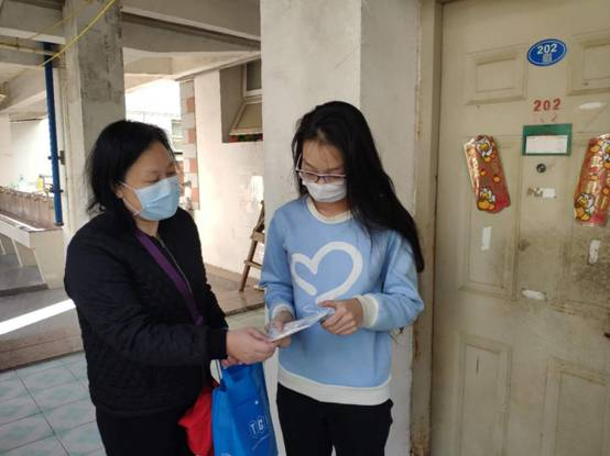 (图:李芬芬副书记看望并为留校学生送上口罩)