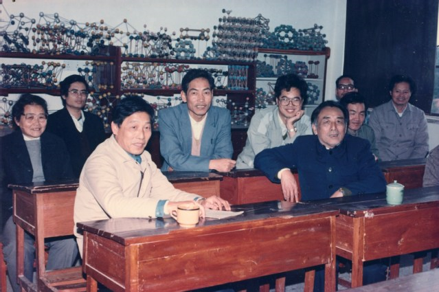 1986年,张乾二(第一排右一)在物构组政治学习会上