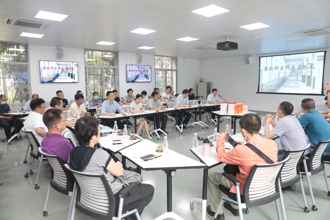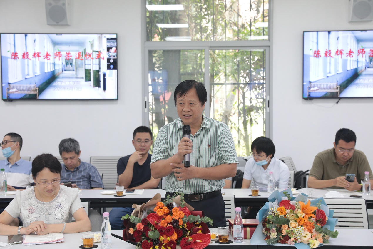 凤凰花开红似火,碧波滚滚映艳阳。6月10日,在厦门大学100周年校庆、化学学科创建100周年暨化工系创办30周年倒计时300天的特别日子,为进一步弘扬尊师重教的优良传统,充分发挥退休教师的传帮带作用,学院在同安二106会议室为陈毅辉老师举行了庄重而又温馨的荣退仪式。院系、研究所领导,兄弟单位代表,学生代表,校友代表和同仁故旧,约50人出席活动。因疫情防控原因,部分无法前来现场的观众也纷纷通过线上会议的方式为陈老师送上祝福。仪式由张昌胜副院长主持。