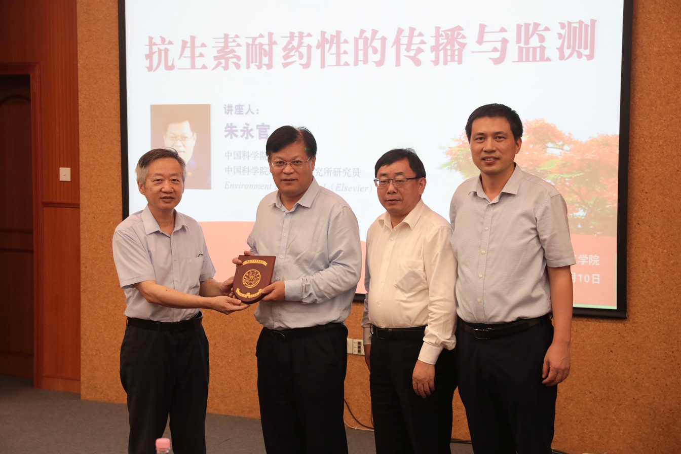 田中群院士等为朱永官院士授予“南强学术讲座”纪念牌