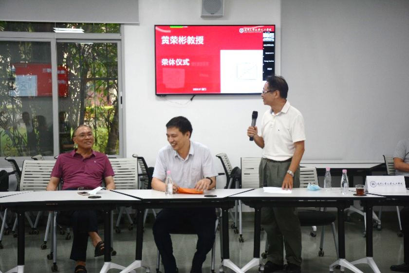 仪式的最后,黄荣彬教授有感而言。他感谢学院、领导、同事、学生用心准备的荣休仪式,让他倍感温暖与感动,能在退休时刻拥有具有如此仪式感和荣誉感的庆典,是一件特别有纪念意义的事情,也是对自己莫大的鼓励与支持。