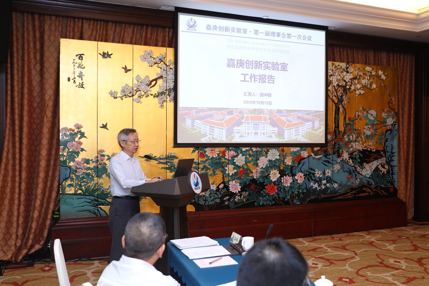 会上,中科院院士、厦门大学教授田中群代表嘉庚创新实验室汇报了相关建设情况。在福建省、厦门市、厦门大学三方深化合作下,实验室各项工作取得良好进展:7万平米能源材料大楼已经投入使用,落成亚洲第一座无噪音实验室,拥有了“国际领先、产业急需”的设施条件;市校签约争创“国家检验检测高技术服务业集聚区”,积极打造国家级科技基础设施优势;汇聚各类创新人才210余人,吸引境内外顶尖科学家、产业领军人才等加盟;布局了燃料电池、Micro-LED未来显示技术等一批重大科技项目,攻克了锂电池用铝塑膜、燃料电池用柔性碳纸\膜的国产化技术,自主孵化创办了一批高技术企业;形成了拉曼光谱检测设备、电镜原位芯片、石墨烯纤维等为代表的20余类60余款高新技术成果;探索人员聘用、项目资助、成果转化等新模式,制定各项规章制度,实验室建设蓝图正在逐步实现。