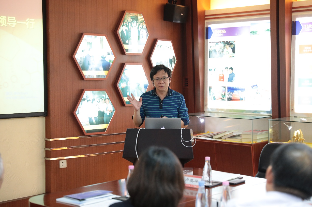 卢英华简要汇报了学院平台建设情况,重点展示了煤化工、荒漠治理等重点合作领域的科研成果,并详细介绍了学校科技成果转化机制。