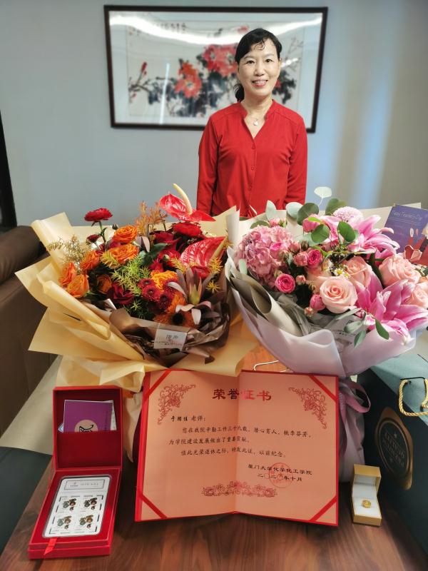 随后,他代表学院献上鲜花、奖章与荣誉证书。汪骋主任代表学院分析测试中心,向于老师赠送同事们精心设计制作、满载回忆、情谊与祝福的荣退纪念册《岁月如歌》。
