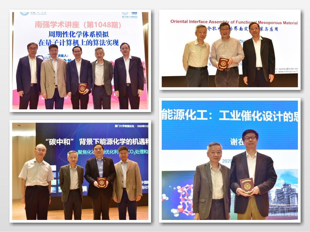 我校田中群院士、孙世刚院士分别为四位主讲嘉宾颁发“南强学术讲座”纪念牌。论坛分别由王野、谢素原和赵仪三位教授主持。