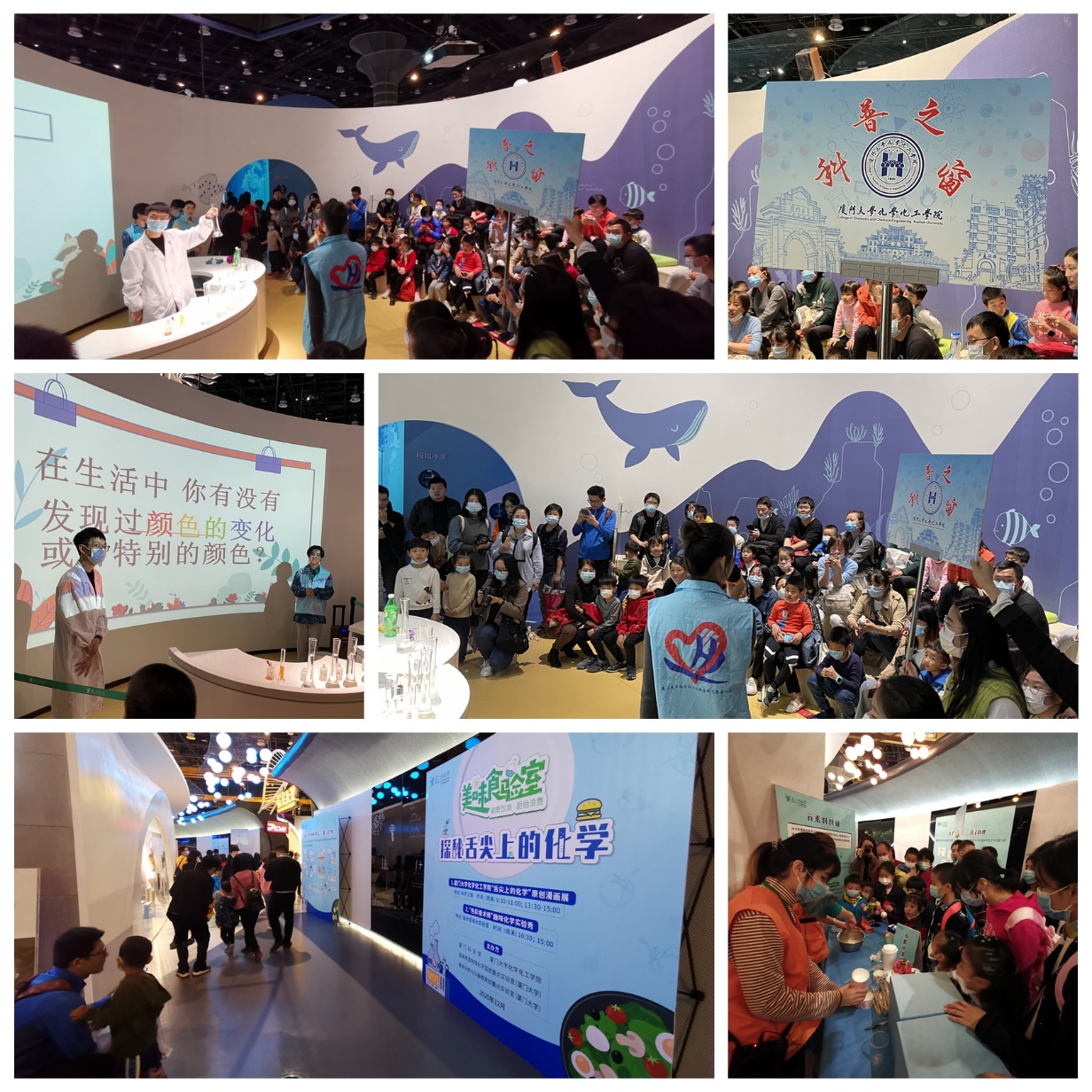 12月,学院与厦门科技馆合作开展两周的《美味“食”验室——探秘舌尖上的化学》科普教育活动,内容包括“舌尖上的化学”原创漫画展、现场进行科普魔术秀趣味化学实验等,旨在引导公众了解和增强食品安全科学知识,也增强化学科普的正面宣传。此次科普系列活动吸引了1600多名厦门市儿童及家长的强烈关注,他们纷纷表示该科普实验对孩子们有巨大的吸引力,帮助他们在迈进科学的海洋中的第一步,也是开拓视野培养求知精神的最好推进剂。