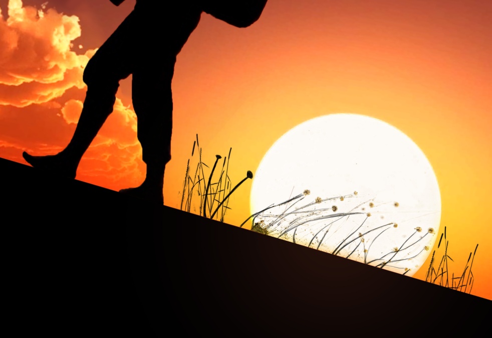 (培养皿艺术创作一等奖作品——千里之行始于足下:作者将显微镜观察拍摄到的霉菌装片上的菌丝视为行走路上的小草,与人物和背景一起构成一幅浑然天成的作品)
