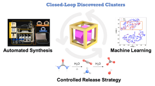 稀土多面体团簇因其独特的几何形状和潜在功能而备受关注,但其精准构筑始终面临巨大挑战。本研究中,团队利用尿素作为缓释源,可控地释放CO32-和OH-,利用CO32-模板效应构筑出十二面体构型的内核Gd20,并进一步组装得到具有三壳层嵌套结构(Gd20@Gd32@Ni36)的稀土-过渡金属簇合物Gd52Ni36。这一策略有效避免了直接添加碳酸盐带来的快速沉淀问题,大幅提高了团簇的结晶效率与纯度。同时,团队结合自主搭建的高通量自动化合成平台与机器学习算法,对780种反应条件进行了系统筛选与优化,揭示了尿素与碱用量对成簇过程的关键作用,并绘制了团簇的合成空间边界。通过实验与模型预测的迭代,不仅加速了最优条件的确定,也为复杂金属簇的可控合成提供了新思路。